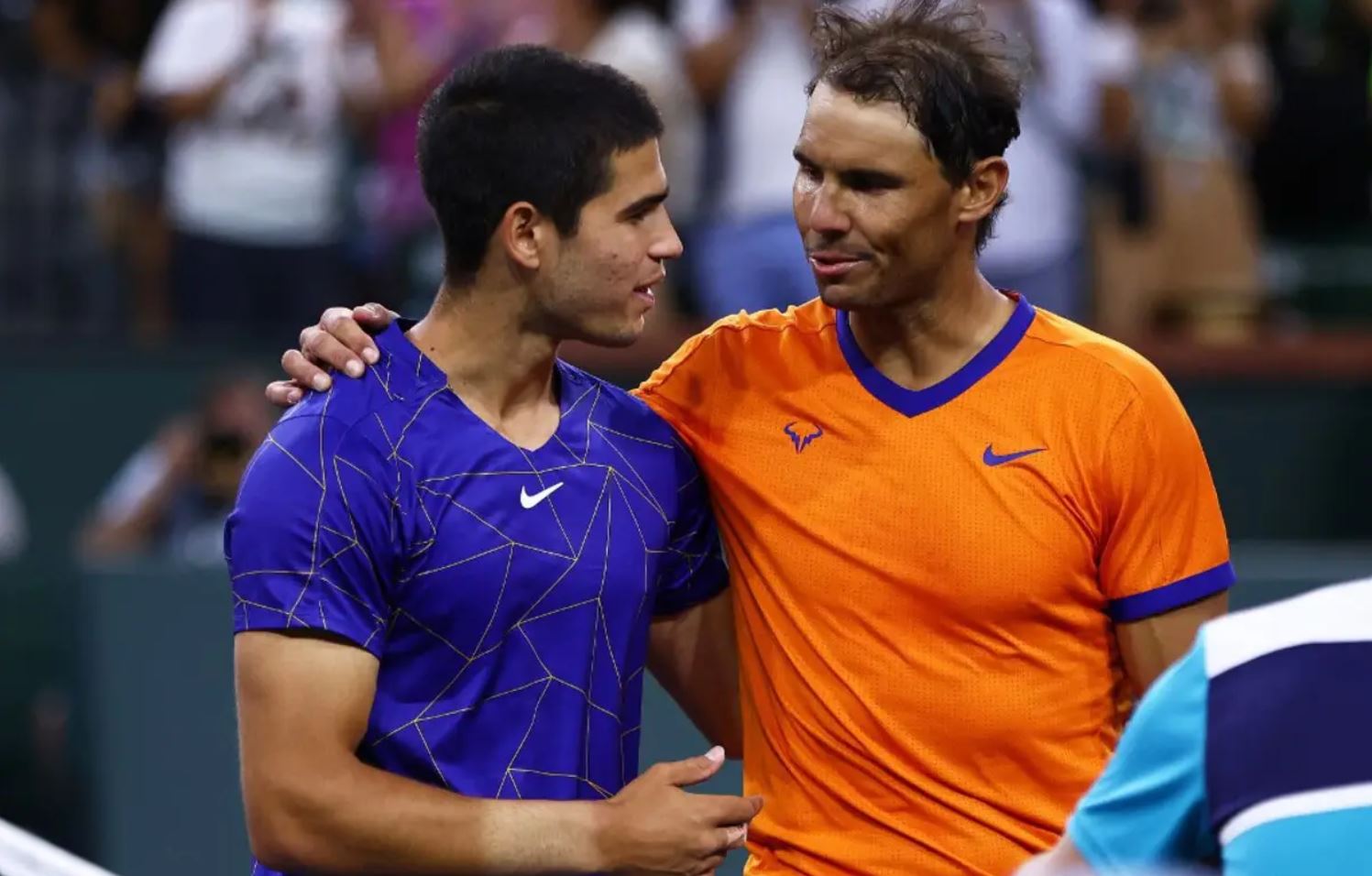 Alcaraz y Nadal se saludan tras la semifinal en Indian Wells 2022.